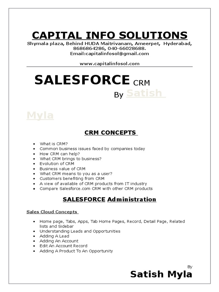 Download Salesforce Admin Material by Satish Myla Capital Info Solutions Comments. Here are some of the frequently asked Salesforce interview questions which give you a basic idea and support during your job trials. So this tool was designed for free download documents from the internet.