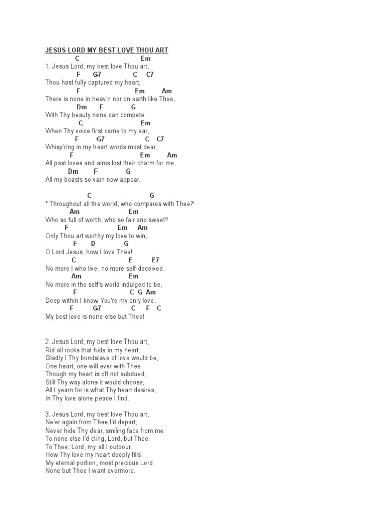 About Press Copyright Contact us Creators Advertise Developers Terms Privacy Policy Safety How YouTube works Test new features Press Copyright Contact us Creators. 12 rows Jesus Lord my best love Thou artThou hast fully captured my heart. There is none in. Jesus Lord my best love Thou art. How I longed to vanish in Thee When Thy tender voice came to me. Jesus Lord my best love Thou art Thou hast fully captured my heart. Jesus Lord my best love Thou art. Jesus Lord my best love Thou art Thou hast fully captured my heart. Who in all the world is as fair as Thee.