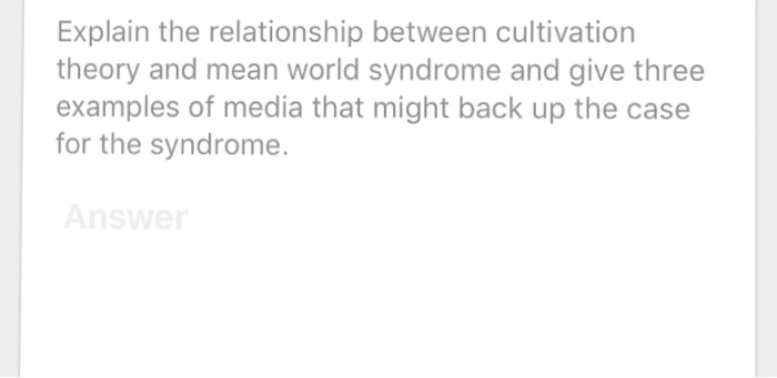 Check out this awesome Our Essays On Mean World Syndrome for writing techniques and actionable ideas. Simple gestures as small as meeting new people and walking the streets at night in their own community have become fearful activities. Look to their parents for behavioral reactions as part of the learning theory and the fear expands into a syndrome. For example by having watchdogs buying new locks and owning guns. Prime time news feeds people with disturbing news like that of gruesome murders rape crime disasters etc inducing people to cultivate pessimistic and fearful views about the world. The Mean World Syndrome is an unfortunate consequence of brutality in the media but this effect is often short lived. An example of the imply world syndrome is news programming.