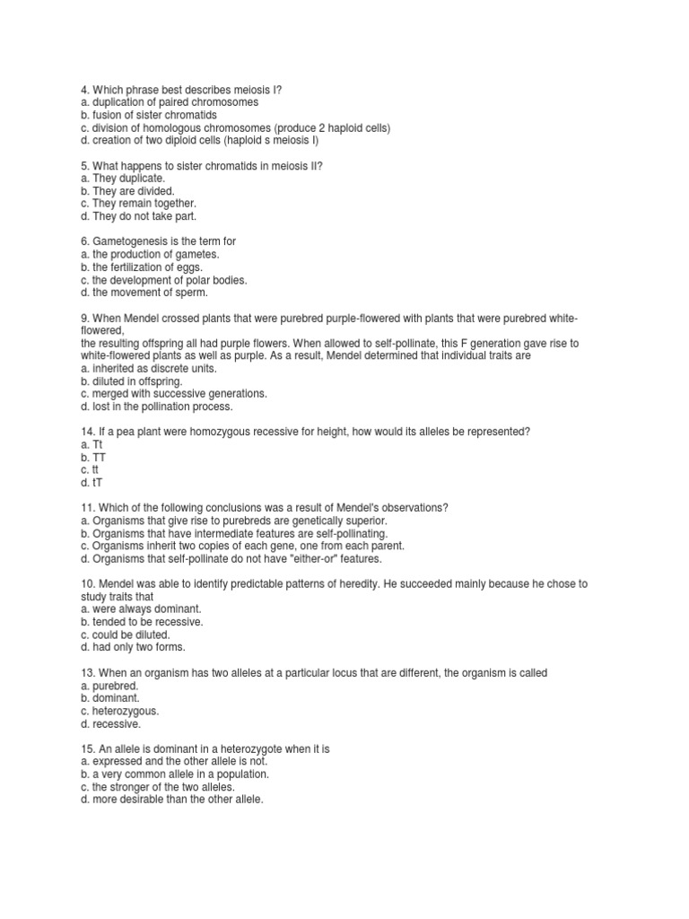 Meiosis produces gametes with one half the number of chromosomes as the. Which statement correctly describes meiosis. C Equal numbers of eggs and sperm are produced by meiosis D Meiosis provides for chromosomal variation in an organisms gametes. Which event is an important factor in increasing variety among sexually reproducing organisms. Mutation in which the DNA content of the gene is ltered. Occurs in body cells. What phrase best describes the process of meiosis. Results in genetically identical cells. Produces haploid gametes At fertilization what happens to the sex cells 62.