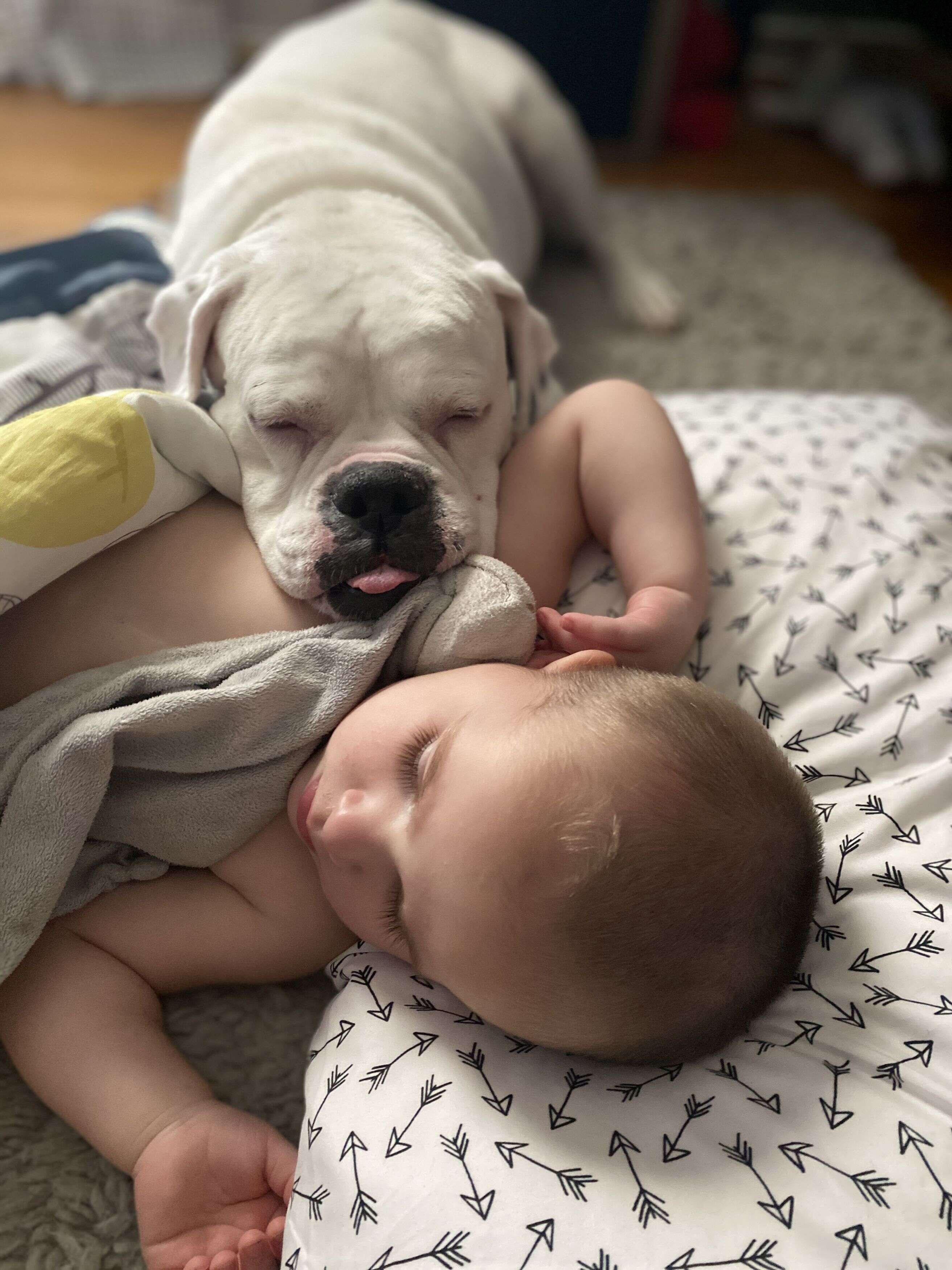 Dog cuddles with baby. Creatures18 Published September 2 2021 14 Views. NJbullznjbullz Zeusiouszacknzeus fairytrailsfairytrails Pablo pablothecocker Chasetheneedygsdchaseandbex. This adorable bedtime ritual started when the baby turned three months old and seems to have discovered that his furry dog siblings were better for napping than any old blanket toy or pillow.
