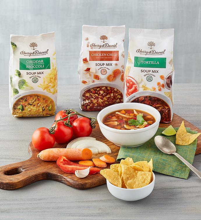 Top harry and david soup recipes and other great tasting recipes with a healthy slant from. Fast delivery full service customer support. Crafted from the finest gourmet ingredients our quick and easy Fajita Chili Soup Mix is a flavorful blend of beans that can be spiced up or served as a more mild dish. 2 tablespoons of extra virgin olive oil. This gift basket includes chicken noodle soup mix 62 oz chicken chili soup mix 104 oz and potato corn chowder soup mix 66 oz Add a flavorful texture to the soup with olive oil and sea salt water crackers 4 oz. SEE ADDITIONAL IMAGES More Photos Indulge in this delectable soup staple of Italian bistros complete with pasta and beans in a rich tomato broth. Harry David Soup Mixes are perfect to keep on hand for quick dinners that are rich hearty and ready in a flash.